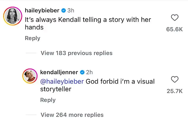 海莉第一时间在评论区打趣:“肯豆永远靠手讲故事。”