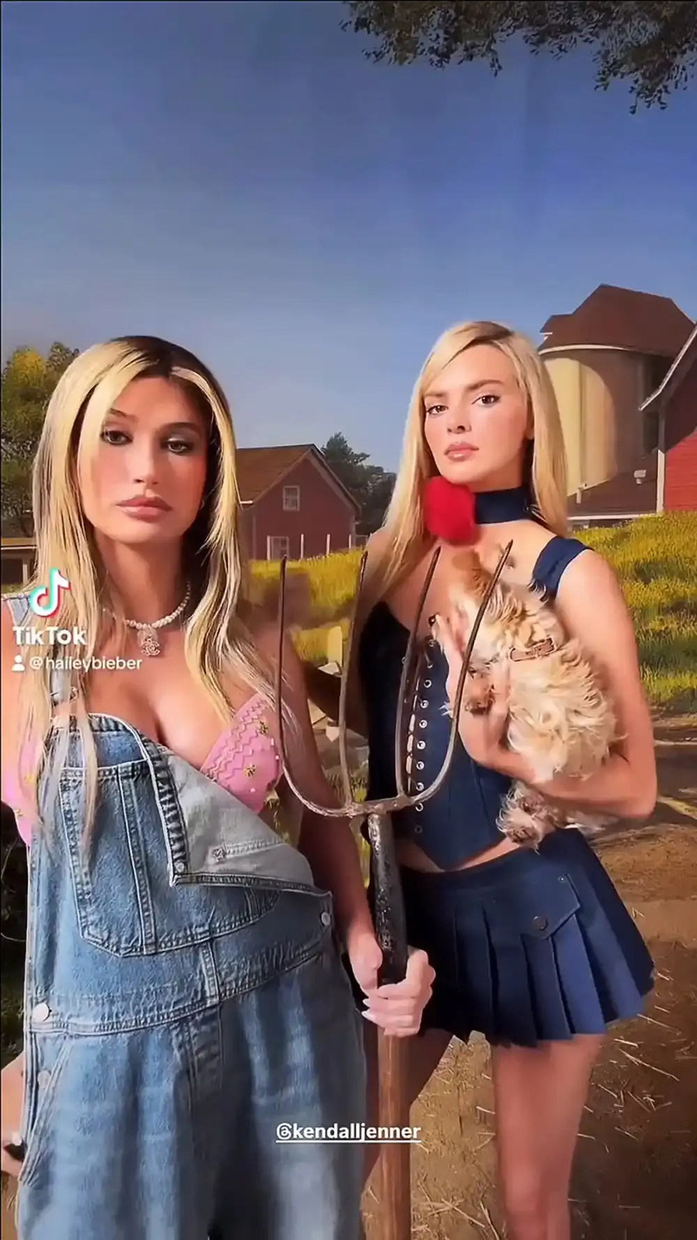 2024年海莉和肯豆一起装扮成《简单生活》时期的帕丽斯·希尔顿和妮可·里奇。