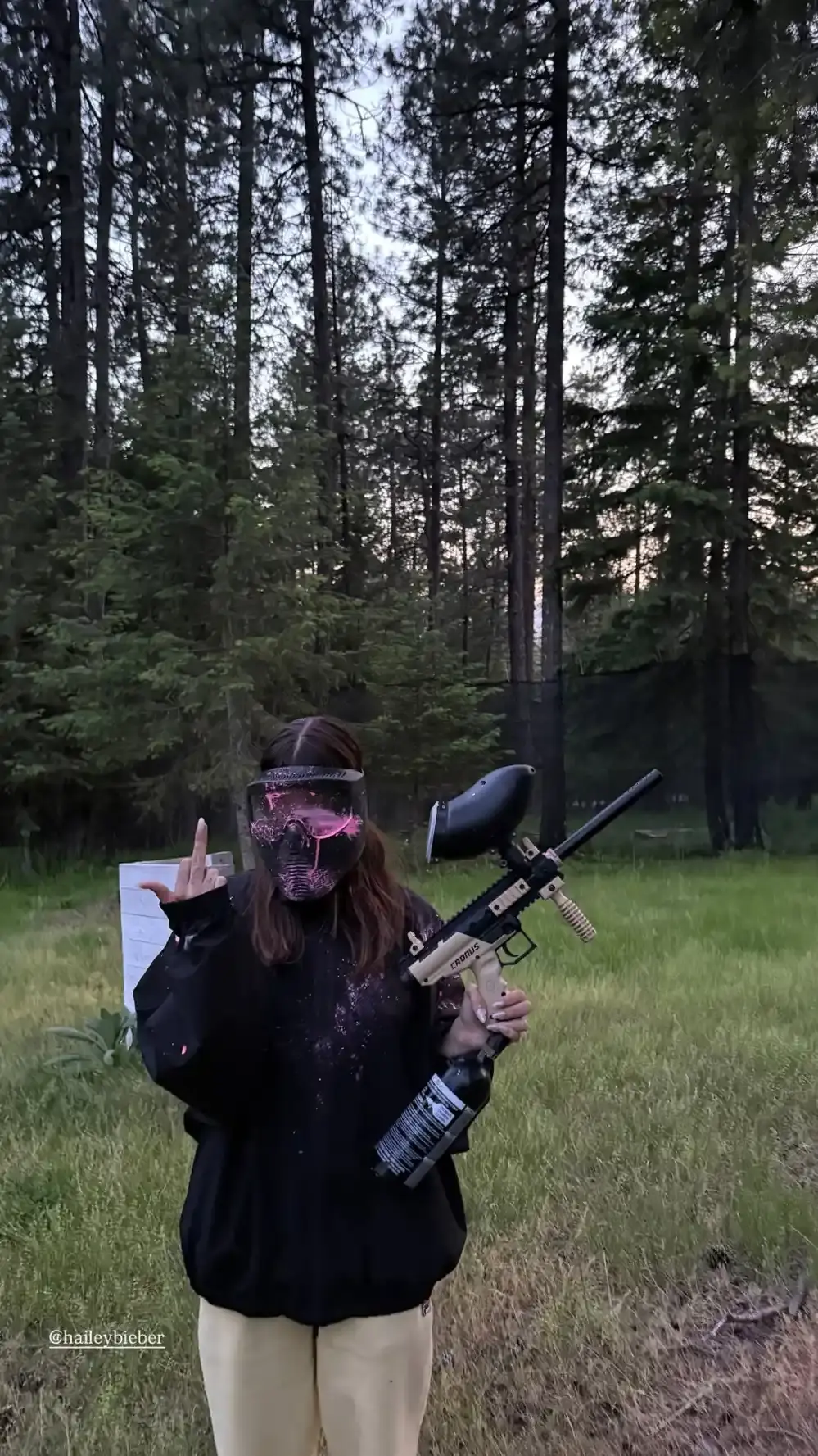 夏天一起去打枪,肯豆还专程秀了海莉朝她比中指的照片,真的很像闺蜜搞怪了……