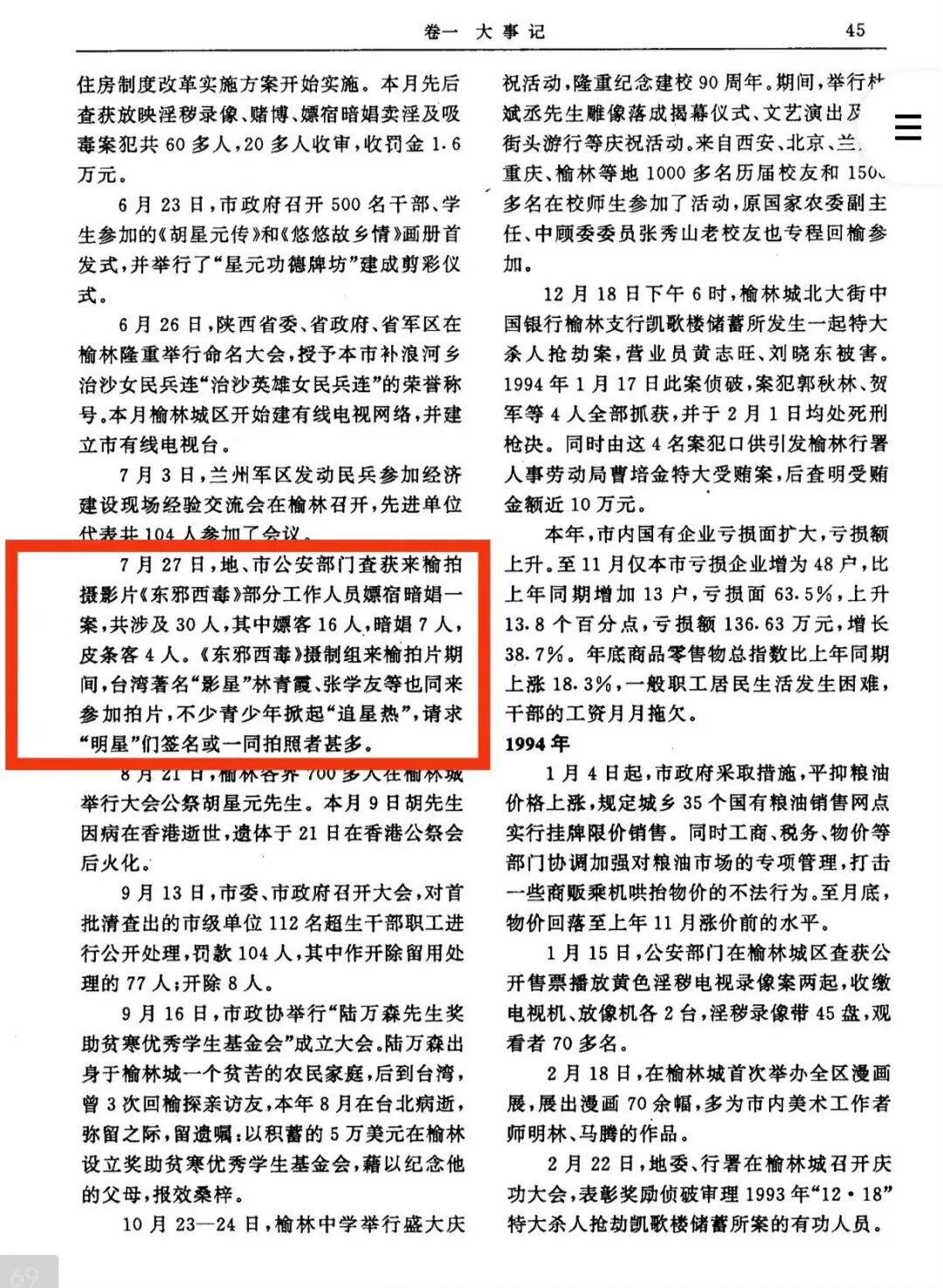《榆林市志》虽然记载了16人因PC被抓的事实,但并未披露案件细节。被抓的16人中,到底都有谁?是仅有外围工作人员涉事,还是一众导演、男明星均有参与?这些细节已无从考证。