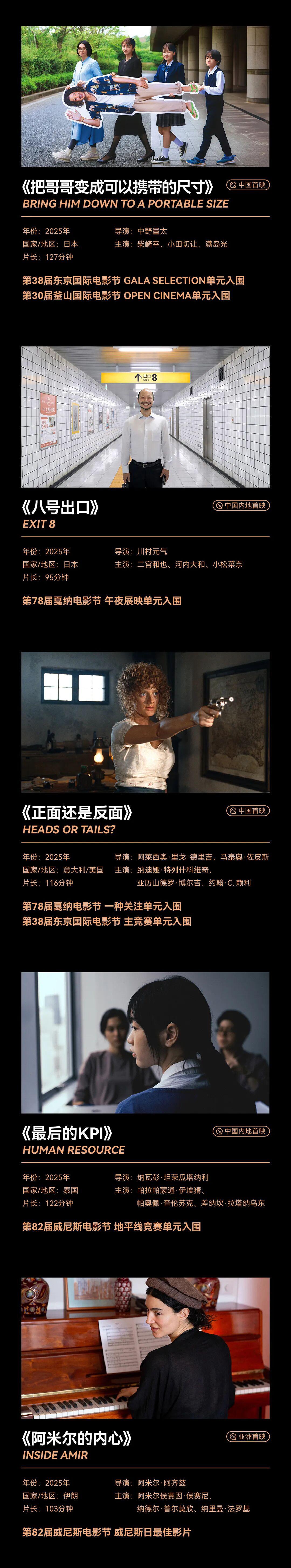 2025年,摄影机依然聚焦于这个复杂而真实的世界,导演们在面对新兴媒介不断冲击的局面下,仍坚持讲述着属于这个时代的迷茫与勇气。电影从未如此贴近生活,也从未如此需要直面生活的真相。银幕即将开启,等候观众纷至沓来。