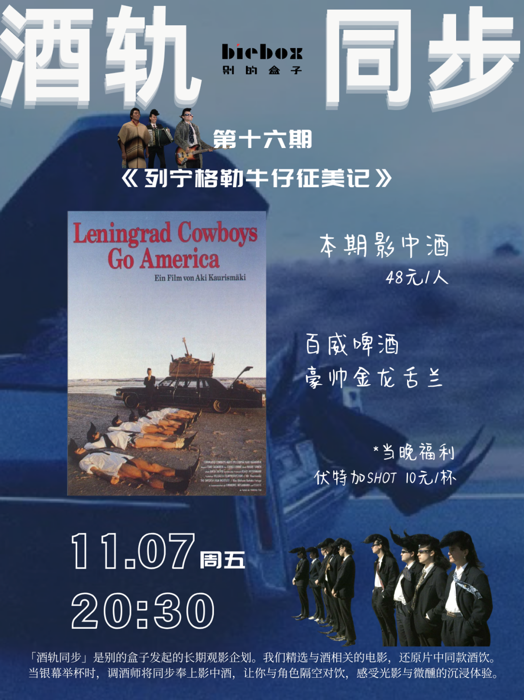 电影放映结束后,我们还将为大家播放“列宁格勒牛仔撞红军超级演唱会(LeningradCowboys Total Balalaika Show)”