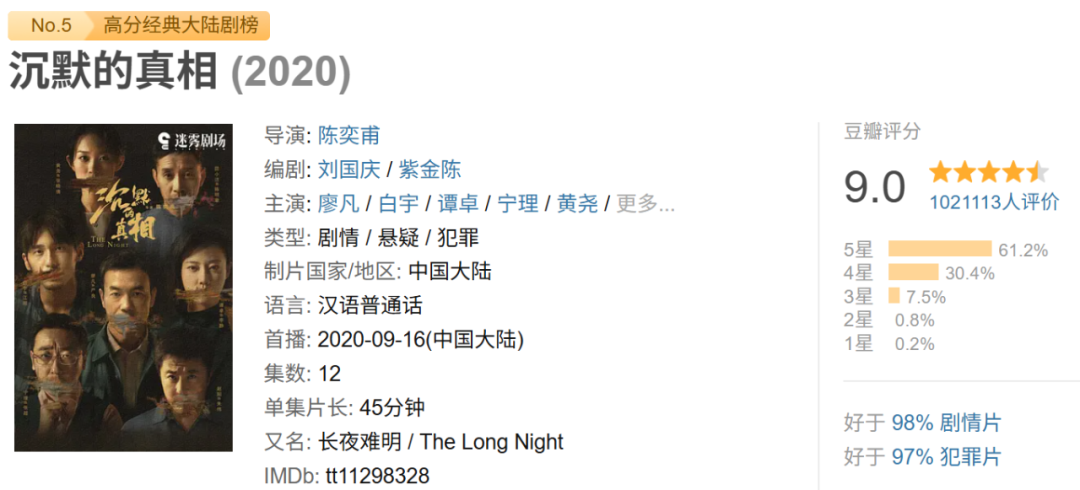到后来的《隐秘的角落》和《沉默的真相》,都让观众真的看到了一部好的作品,从人设到情节再到剧中逻辑的完美自洽。