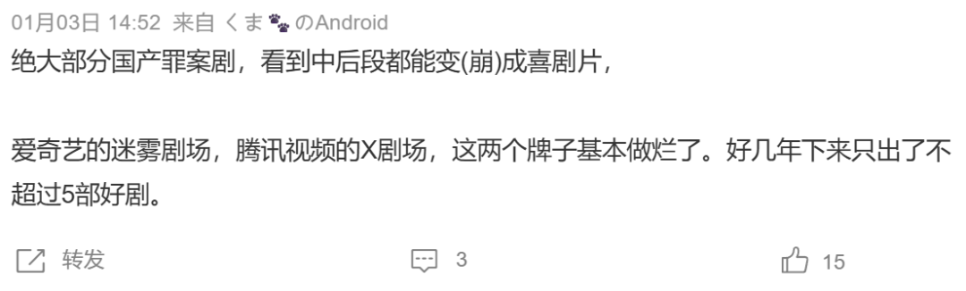 迷雾剧场的几部悬疑剧的成绩都不及预期。