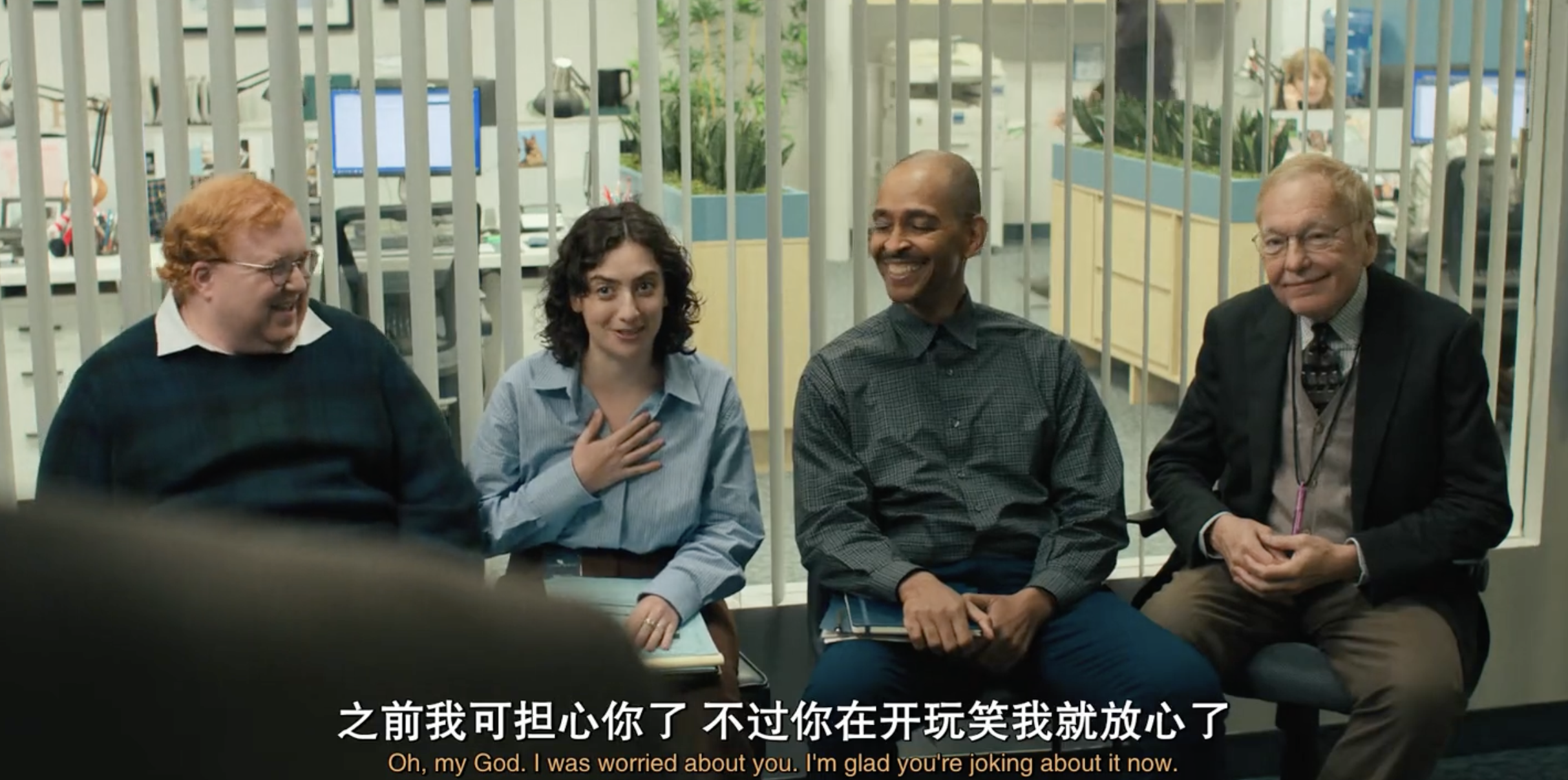 罗恩因椅子事故陷入“被害妄想”,白天工作如履薄冰,夜晚化身蹩脚侦探,在办公室复盘每个细节,连同事的咳嗽声都成为他眼中的暗号。