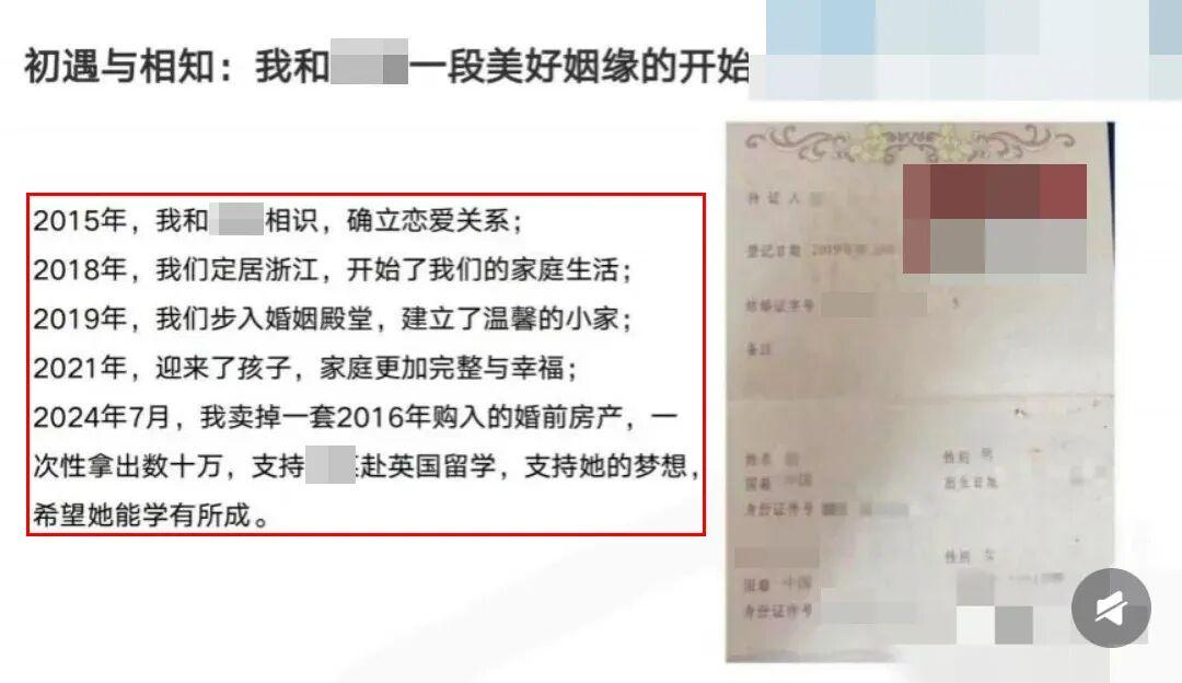 女方丈夫为支持妻子留学,变卖婚前房产筹集数十万元。然而,妻子到英国仅一个月就与他人发展不正当关系,回国后仍保持联系。最终,丈夫收到的不是学业有成的喜讯,而是妻子的病历和出轨证据。