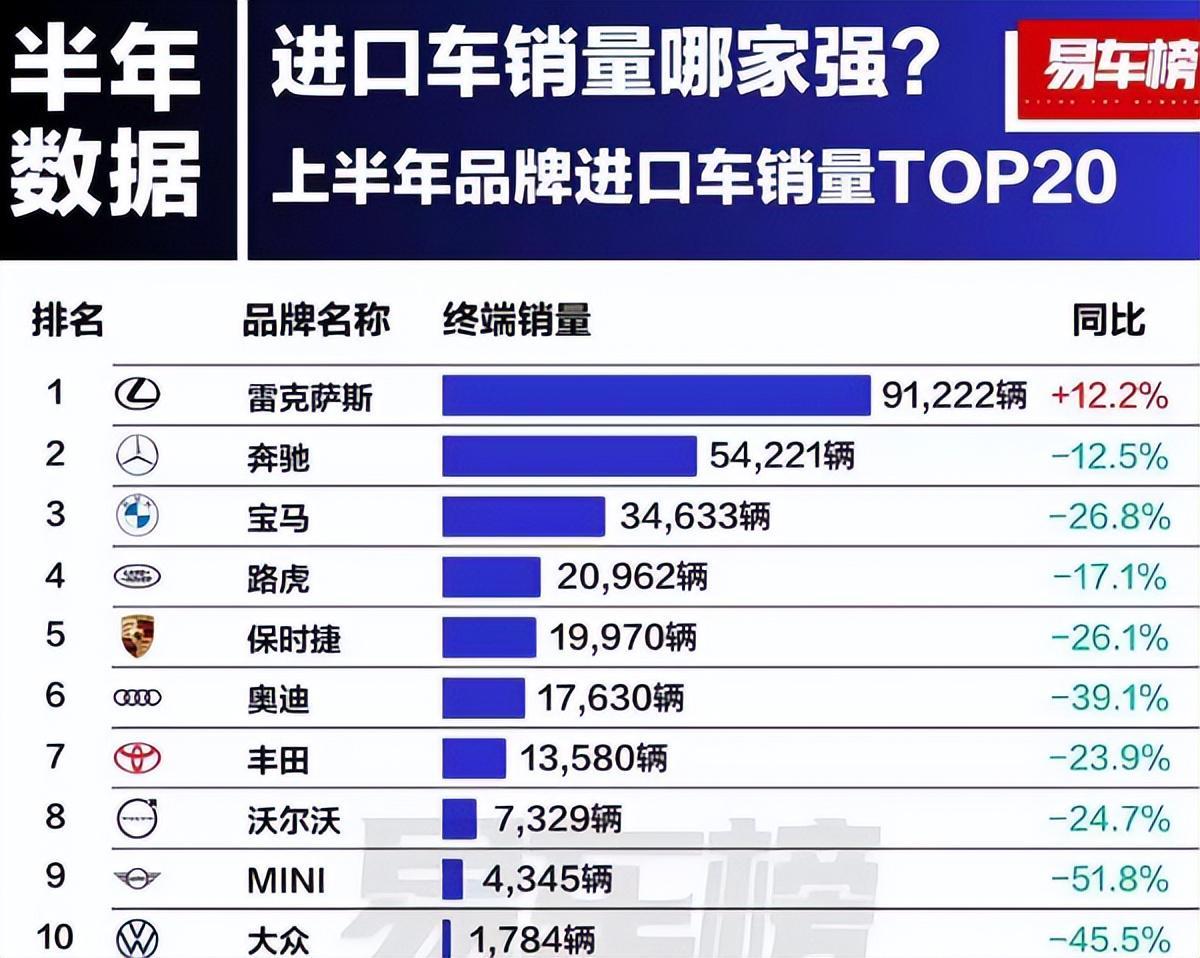不过值得庆幸的是,在老广的偏爱里,雷克萨斯的销量在二线豪车中还算坚挺,今年上半年,雷克萨斯的销量超过了8.5万辆,是唯一实现正增长的进口豪华车品牌。