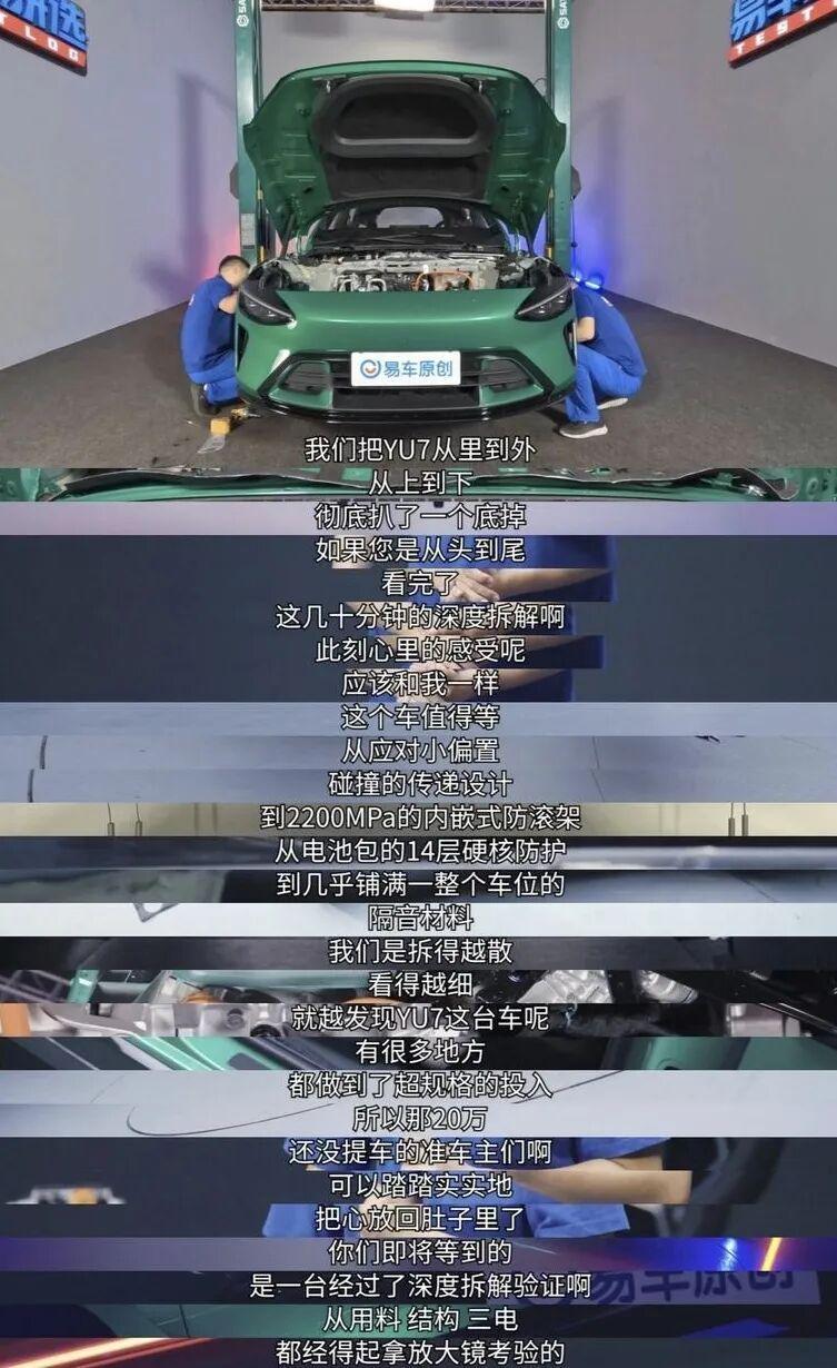 在对小米YU7进行彻底拆解后,易车节目组评价道:“这是一台从用料、结构、三电到NVH均经得起放大镜考验的硬核好车。”并喊话20万未提车用户“可安心等待”。