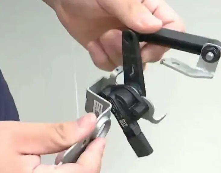 在检测现场,工作人员从车中拿出来一个L形的零件。