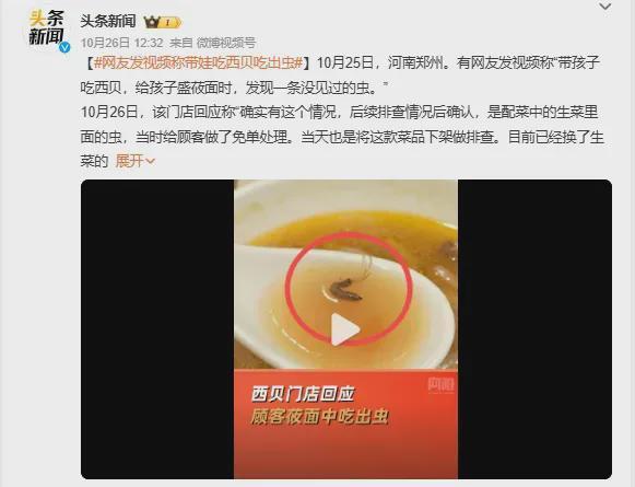 就在预制菜风波没平息时,郑州一位宝妈带着孩子吃西贝,一勺莜面舀下去,竟爬着一条活虫!宝妈气得发抖,毕竟这可是给孩子吃的。