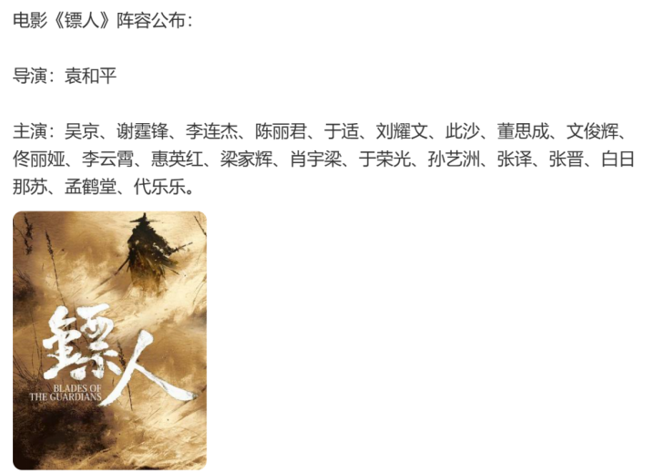 可以说,《镖人》这部电影就是奔着票房而来的,而且这次主演阵容更是不容小觑。