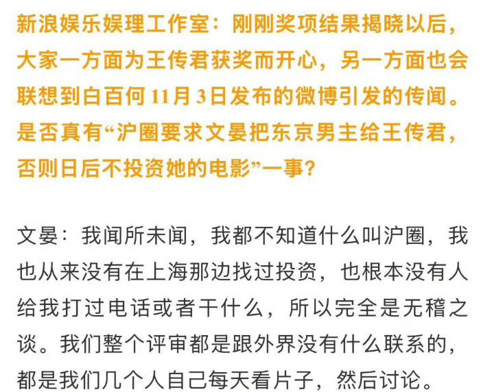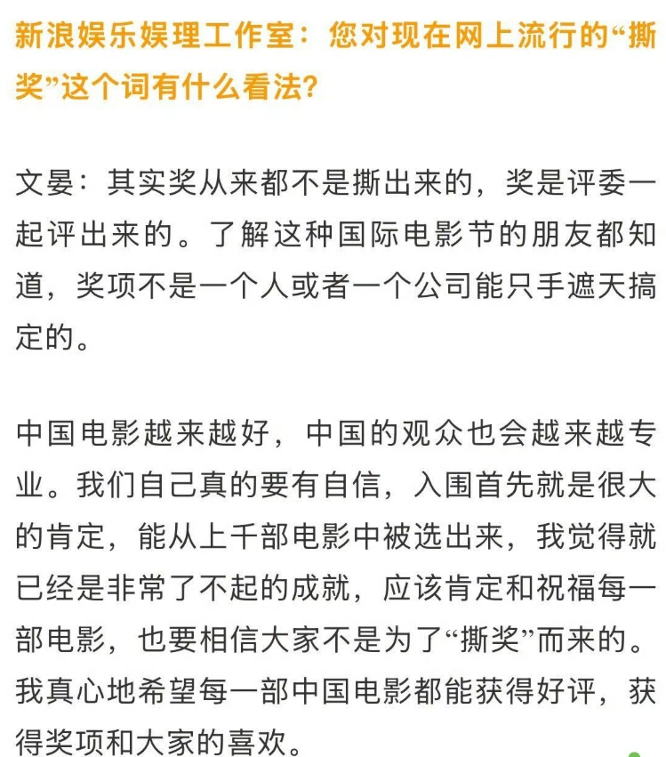 针对"沪圈资本运作"的传闻,文晏明确表示:"我从未参与过任何地域性资本合作,评选标准纯粹基于艺术价值。国际电影节的权威性建立在程序公正基础上,任何个人都无法左右最终结果。"