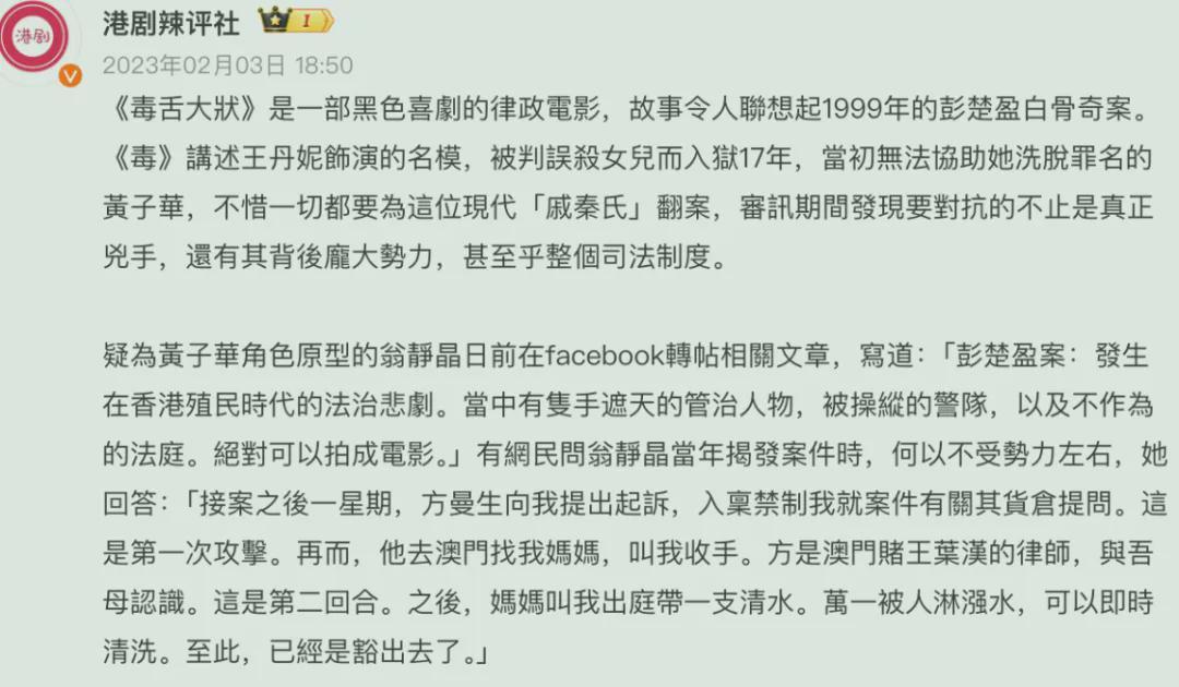这个案子,后来被改编成《毒舌大状》,黄子华的角色原型,就是翁静晶。