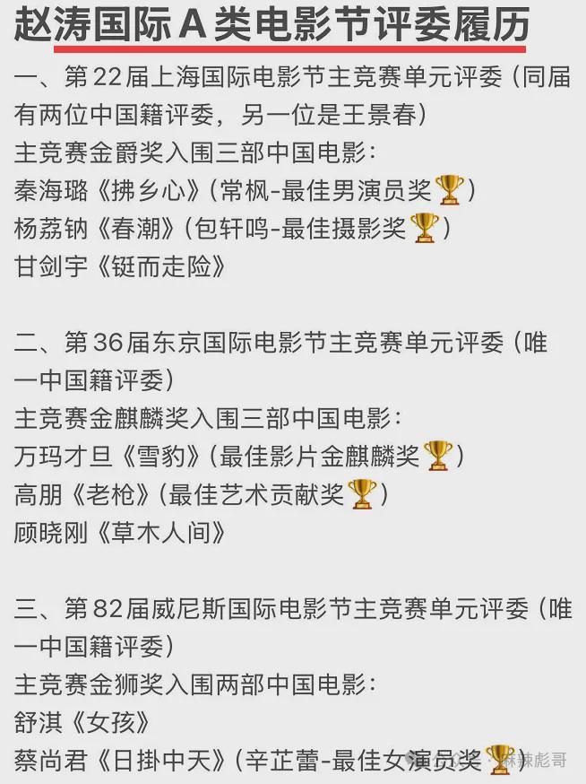 网友总结,只要赵涛担任评委,华语电影就不会空手而归。