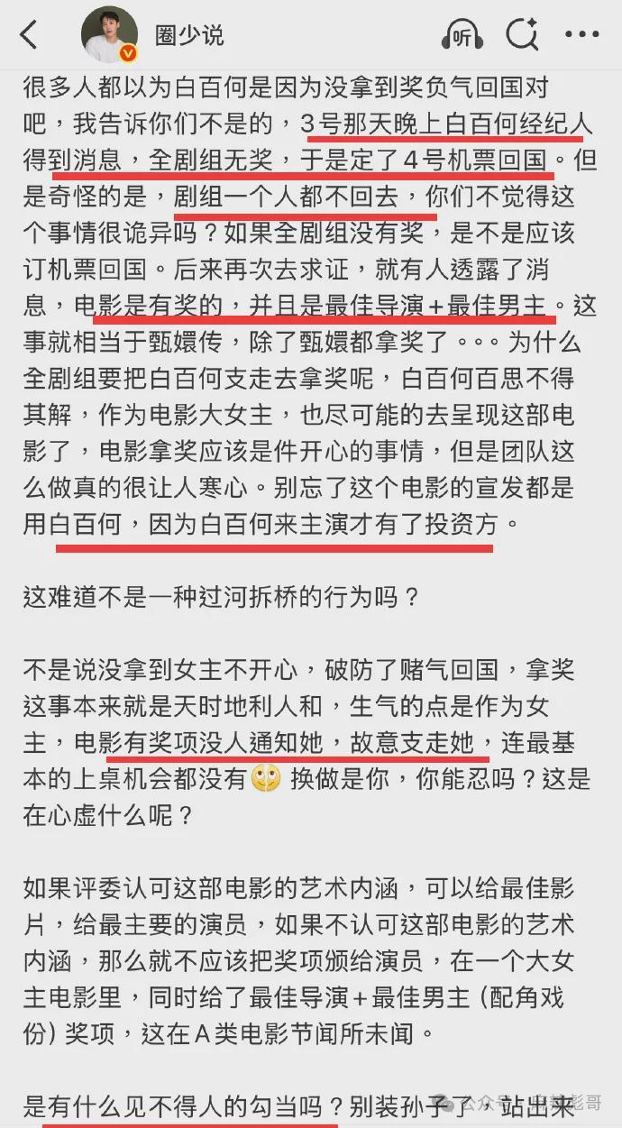 两位朋友+白百何自己下场,愿意看的可以详细看,觉得太长就拉到后面,我详细总结。
