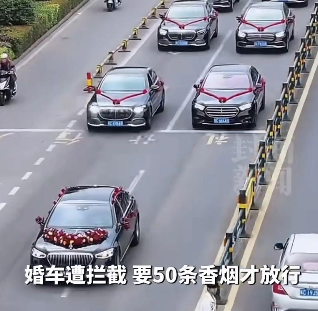 据媒体报道,11月5日,河北廊坊一对新人的婚车遭拦截,对方索要50条烟作为喜钱,最终新人决定弃车离开。11月6日,车队司机告诉封面新闻记者,新娘不是廊坊当地人,被拦位置为新娘暂住的酒店停车场,婚车需要从酒店开往新家。新娘当天刚下楼,婚车就被拦住了,“反正没坐婚车,自己走出停车场,他(拦车者)要50条烟,听说新娘回去都给气哭了,人家说挺遗憾的,都没坐上婚车”。