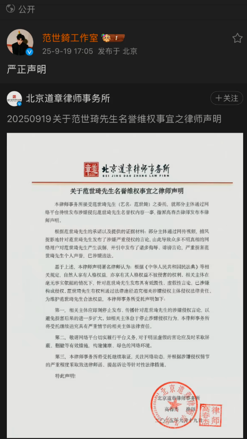 的确,因为吴签、李某峰等人,律师函在娱乐圈已经没了公信力。此前被质疑的程青松和高泰宇等人都选择了报警,如果范世琦想自证清白,最好的方式确实是报警。