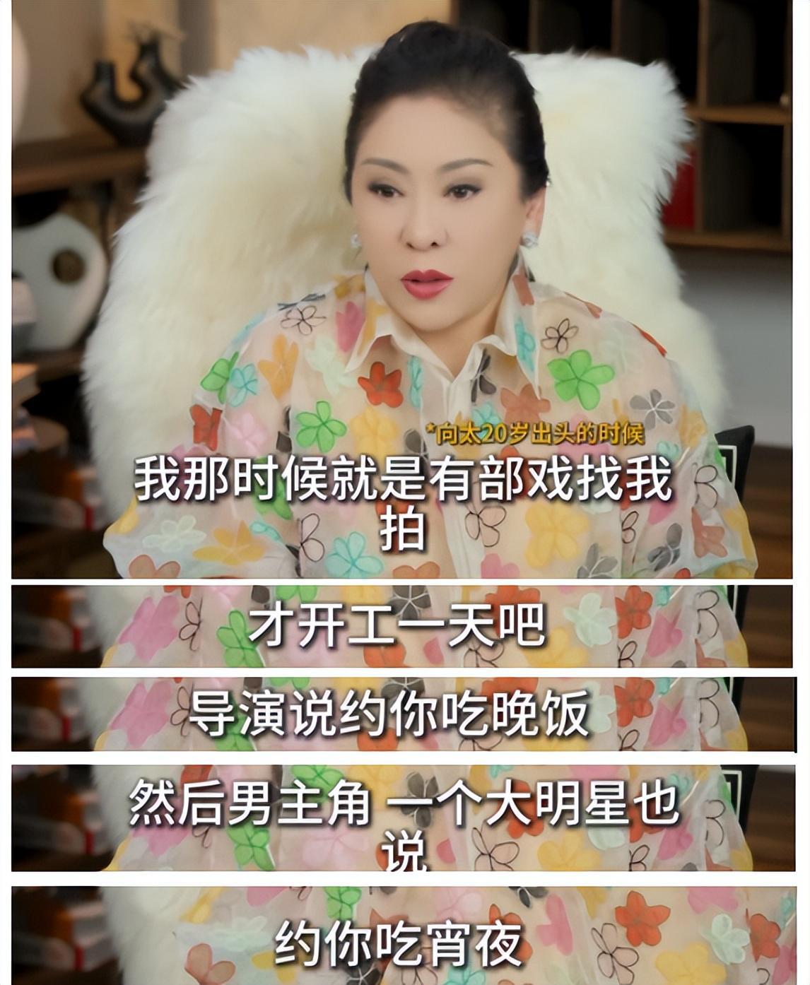 向太说她年轻做模特时得到拍戏的机会,结果导演约她吃饭,男主演也约她吃饭,她知道他们是何居心。