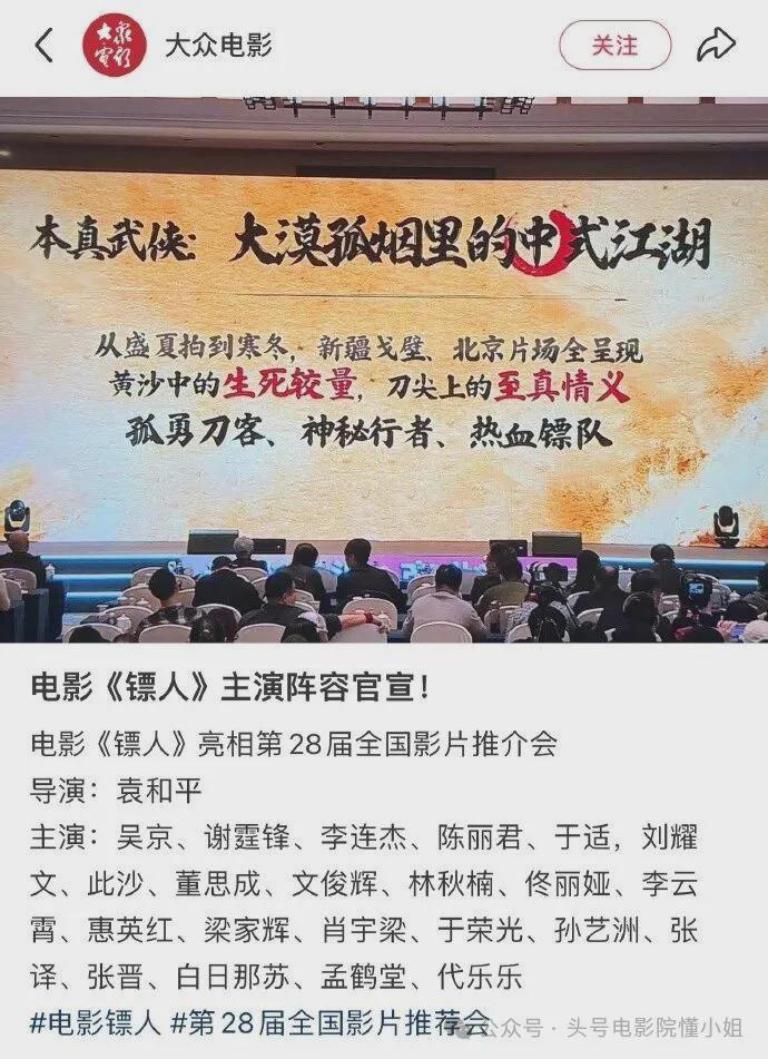 吴京监制、主演的武侠大片《镖人:风起大漠》(以下简称《镖人》),终于又官宣了。