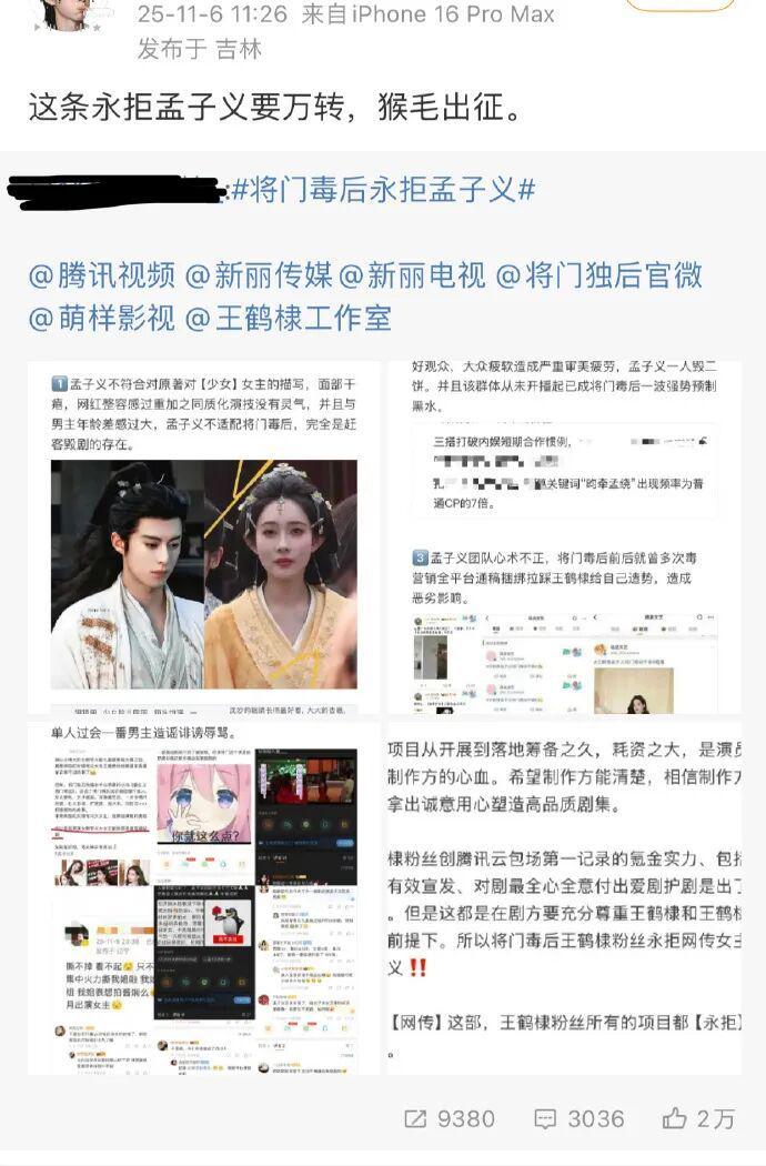 王鹤棣粉丝连发N点说明为什么《将门毒后》永拒孟子义: