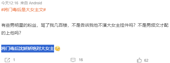 可是在孟子义粉丝眼里,《将门毒后》可是实打实的女频剧。