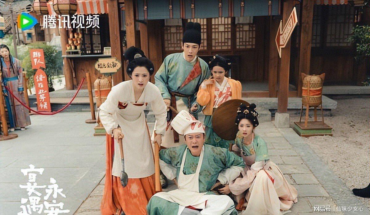 《宴遇永安》改编自人气小说《长安小饭馆》,剧情结合穿越、美食和甜宠,这部剧一样被原著书迷吐槽魔改,因此评价不高,仅5.9分,不过也有人越追越香。 《宴遇永安》是一家人集体穿越的设定,撑过开头后,美食经商线和爱情线展开,剧情挺下饭。