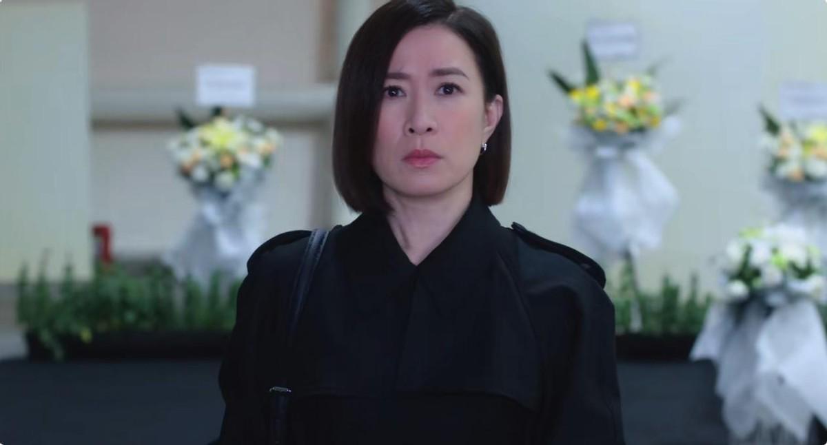 文慧心(佘诗曼饰)披黑衣出席,神情克制,古肇华(黄宗泽饰)低头假哭,镜头扫过几位熟面孔,张家妍(李施嬅饰)、许诗晴(高海宁饰)、刘艳(王敏奕饰)都在。