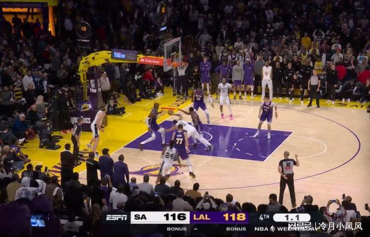 在昨日缺少詹姆斯和里夫斯两大主力的比赛中,湖人主场迎战本赛季状态火热的马刺队。经过激烈角逐,湖人在下半场一度落后10分的情况下实现逆转,最终以118:116险胜对手,豪取五连胜。今日NBA官方发布的最后两分钟裁判报告显示,比赛出现一次对湖人不利的错判。