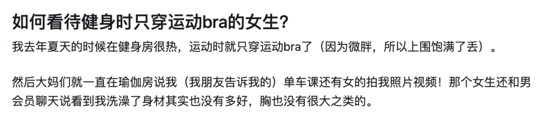 前段时间,某社交平台上一则关于健身房穿搭的帖子引发了轩然大波——标题赫然写着:“如何看待健身房只穿运动bra的女生?”这条帖子浏览量突破两千万,评论区瞬间炸开了锅。有人力挺:“身材好就该展示,这是自信的表现!”也有人激烈反对:“太不合适了,这样太招摇!”甚至有中年女性直接投诉称“影响公共场所风气”。