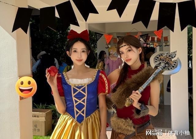 宣云的用心不仅体现在自己的装扮上,更体现在对活动的投入中。她手里拿着一个红苹果作为道具,与整体造型完美配合,还在班级里为小朋友们分发贺卡和糖果,尽显亲和力。