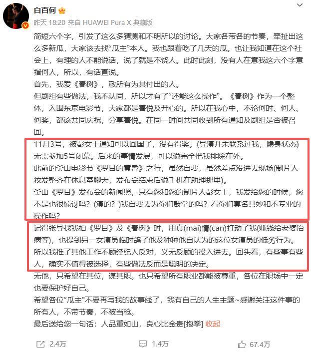 近日,白百何发了一篇长文,算是给这件事做了一个公开回应。