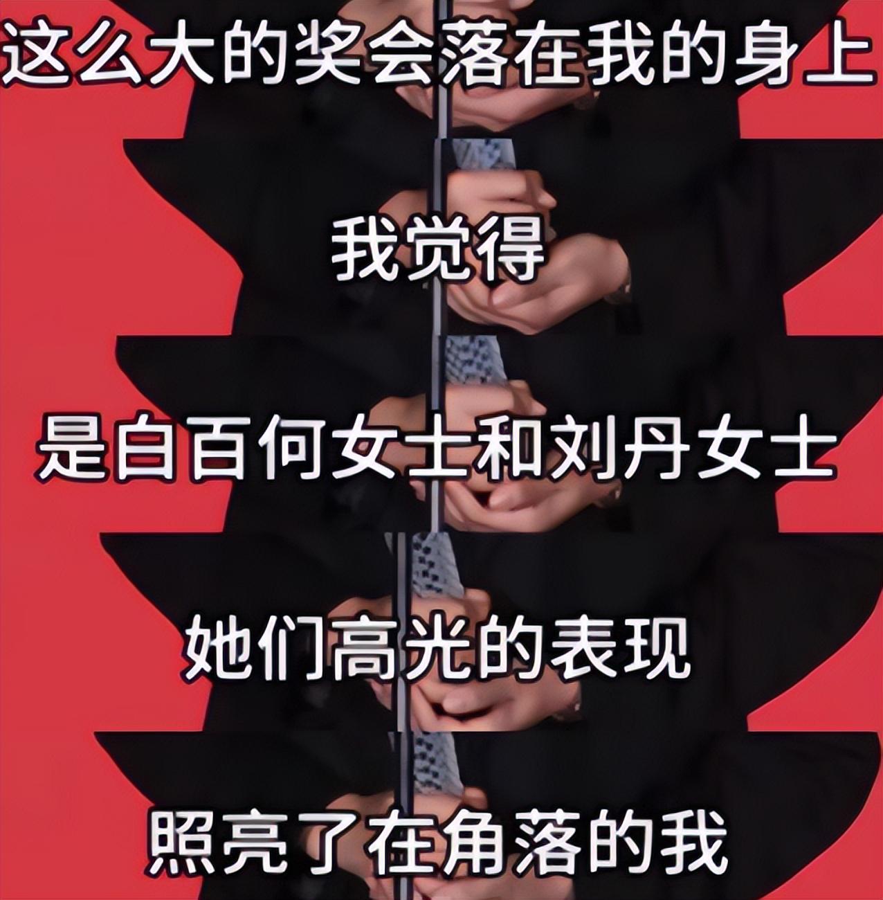 他不仅反复强调自己获奖很意外,还表示,“是白百何女士和刘丹女士,她们高光的表现照亮了在角落的我。”