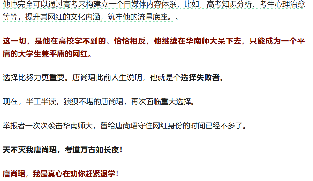 这文章针对他因为外出参加活动被人举报,搞得特别狼狈,我劝他赶紧退学,用心做自媒体算球。