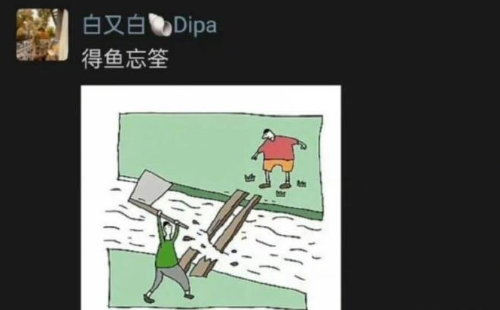 她在朋友圈还发了“得鱼忘筌”的文字,配过河拆桥的图片,直接表示自己被利用和抛弃了。