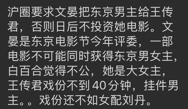 一时间,关于“东京电影节黑幕”“文宴沪圈关系”“王传君资源咖”等消息传得沸沸扬扬。