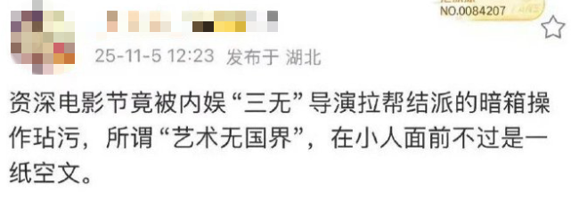 1、《春树》剧组得奖,但她从头到尾没有被通知,被排除在外,连最后的闭幕式都没参加。