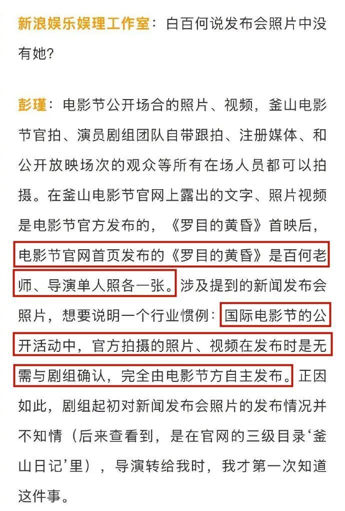 之前在参加釜山电影节期间,导演有直接联系白百何,但却被白百何告知需要对接她的经纪人。