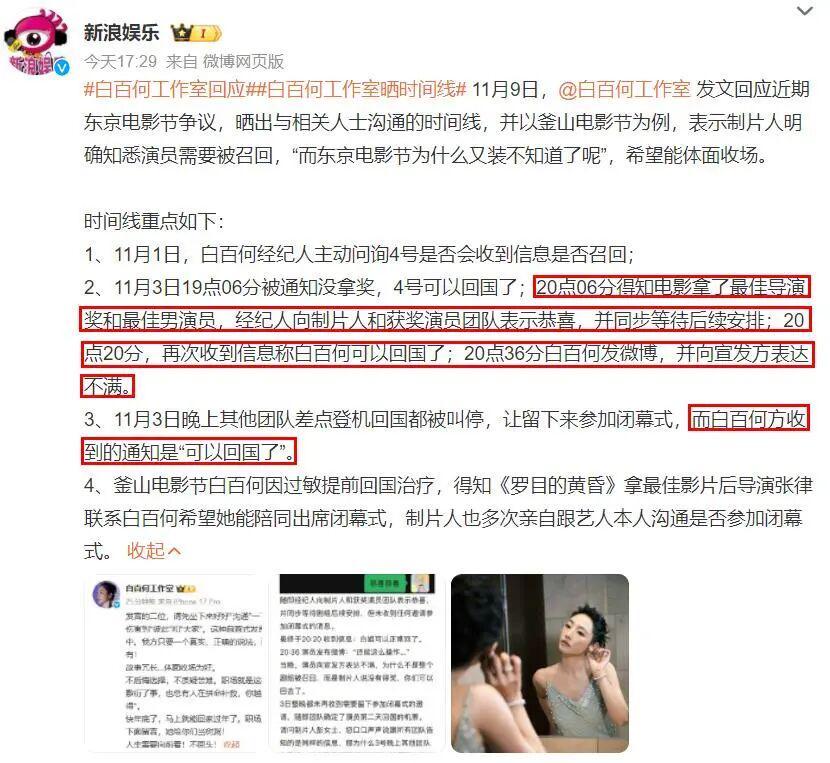 白百何必须回国不必参加后续活动,工作室则没有晒出相关截图。