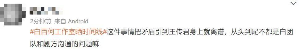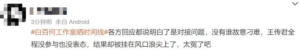 网络的评论则开始向着“两边都有错”,甚至“白百何故意引战”“白百何经纪人不作为”等方向发展。