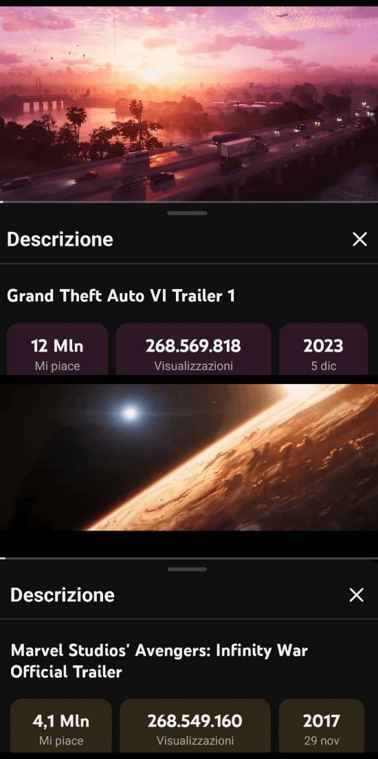 而《GTA6》的首支预告也于昨日达到2.68亿,超越《复联3》,正朝着2.7亿次冲刺。