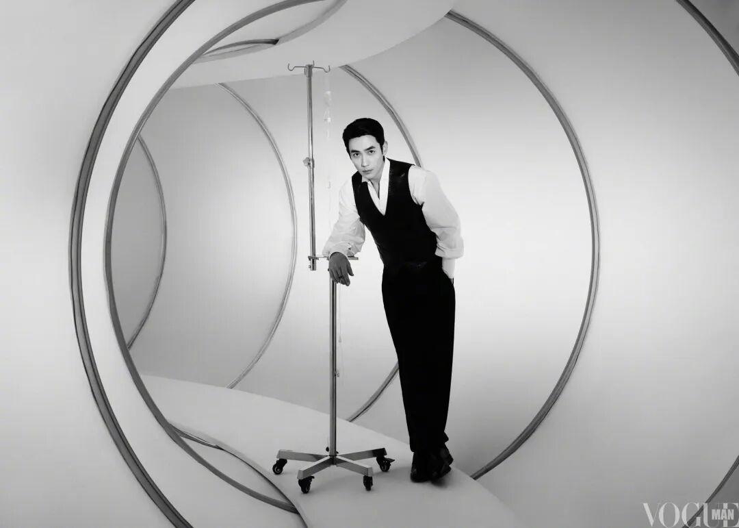 演员朱一龙登上《Vogue MAN》杂志新刊封面,以1997年经典科幻电影《千钧一发》(伊桑·霍克主演)为致敬对象,一人分饰普通人类与基因改良样本两角,在DNA螺旋链的两端与自己对望,演绎“自我进化论”。镜头里的微表情传递戏剧张力,带领观众入戏。