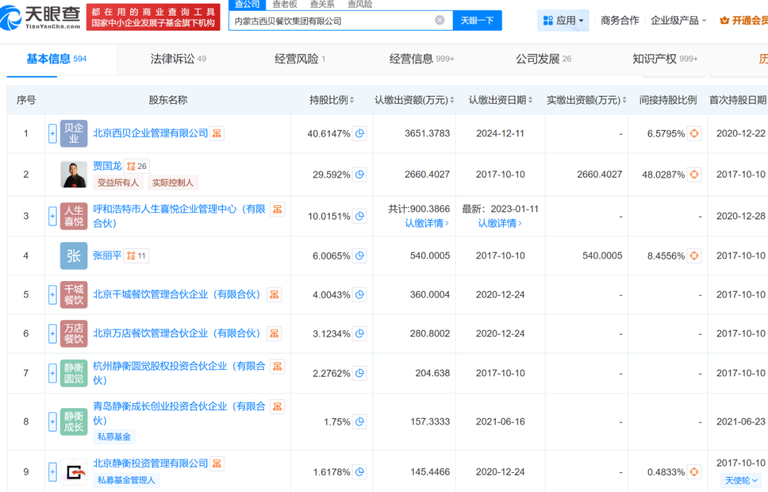 9月14日,数十人聚集西贝北京门店举牌“支持内蒙企业,维护非遗品牌”,引发公众对西贝注册地与经营地的质疑。通过天眼查查询发现,西贝采用“总部-合资公司-门店”三级架构: