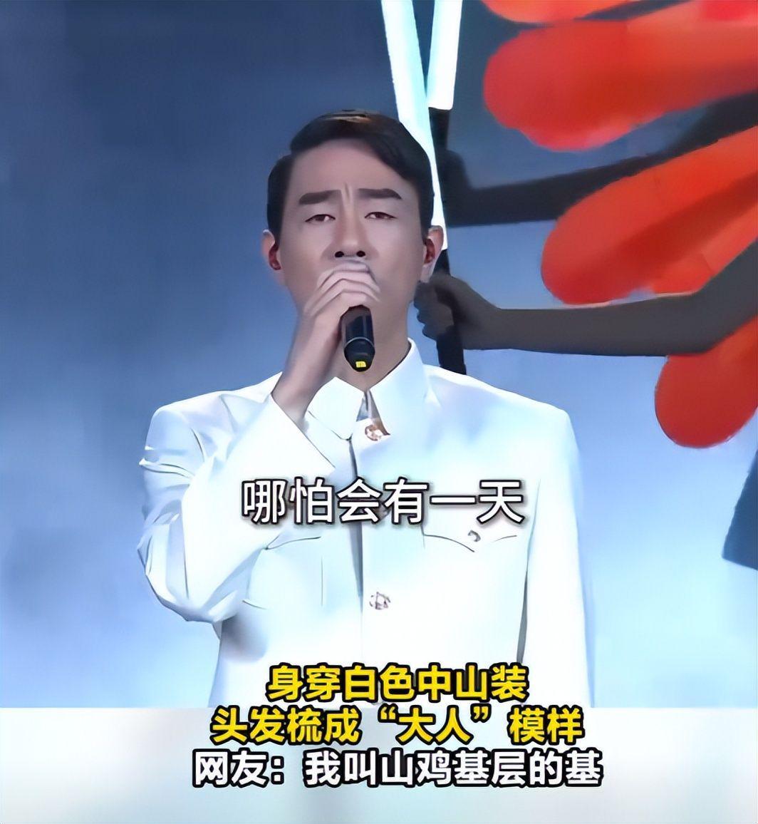 但如今多年过去,一个个却穿上了中山装,板板正正地站在舞台上唱起了《海阔天空》。
