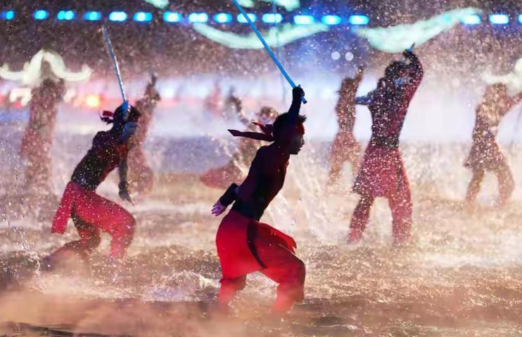 一次彩排后,总制作人看着场地上的积水突然灵光一闪:“何不把积水变成舞台?”