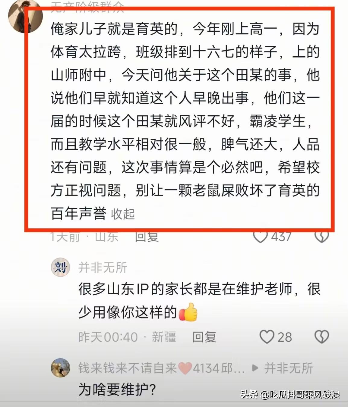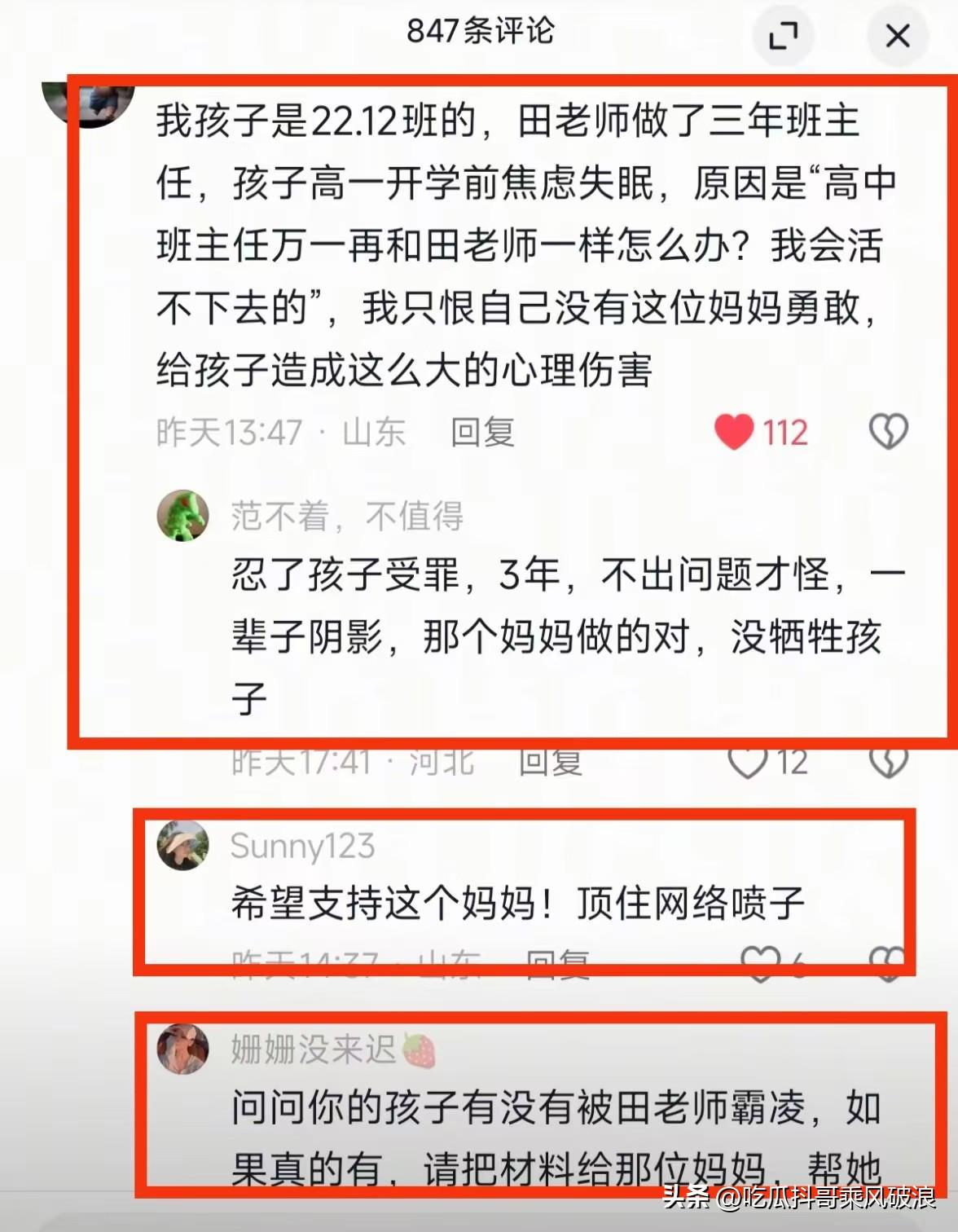这起事件并非个例。多名毕业生家长在小林父母发布的帖子下留言,称自己的孩子也曾遭受田老师的打骂,甚至产生严重的心理应激反应,上了高中仍心有余悸。这反映出田老师在教学过程中可能长期存在不当行为。