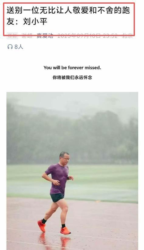 9月18日,清华大学晨跑队传出令人悲痛的消息:年仅51岁的队员刘小平突然离世,消息一出,整个团队陷入深深的哀悼之中。