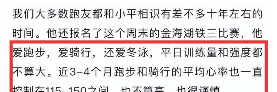 按常理推断,拥有八年系统跑步经验并严格监控生理指标的人,理应具备较强的健康管理能力。但刘小平的离世再次提醒世人:运动并不等于绝对安全,真正的健康需要更全面的认知与防范。