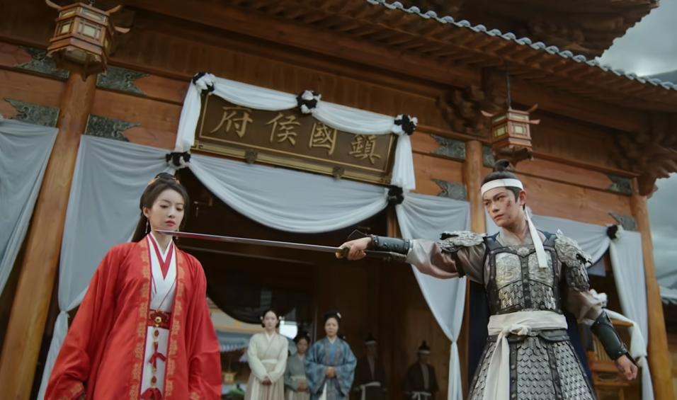 这剧背景是在大遂与北岐连年征战,宋茜扮演的楚瑜,和丁禹兮扮演的卫韫都是武将之家。代表大遂出战的卫家得胜而归,楚瑜在卫家军经过的春风楼上一身红衣飒爽舞剑。恰逢付辛博饰演的楚瑜旧爱顾楚生迎娶国公之女的队伍也来了,众人还以为楚瑜是要拦下顾楚生。