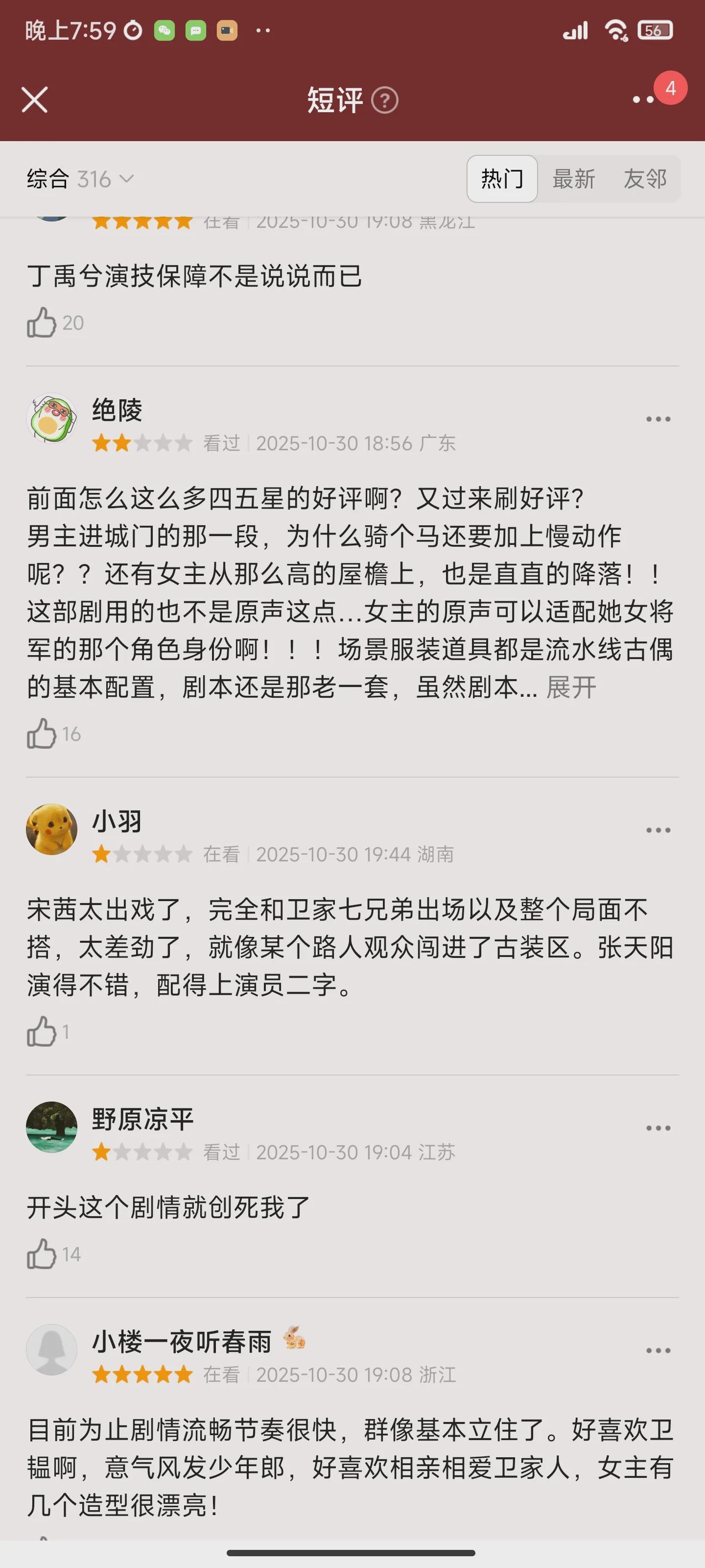 还有宋茜的表演也被吐槽,和卫家七兄弟出场以及整个局面不搭,就像某个路人闯进古装区。还有人表示请内娱放过女将军。