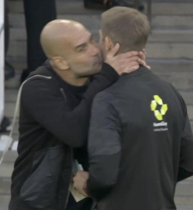 据直播吧9月22日消息,在这场激烈的比赛中,曼城主帅瓜迪奥拉在场边与裁判进行了一番交流。这本是比赛中常见的场景,教练与裁判就判罚等问题进行沟通。然而,令人意想不到的是,瓜迪奥拉在交流过程中,竟然亲了一口裁判的脸颊,这一举动瞬间引发了现场观众和球迷们的热议。
